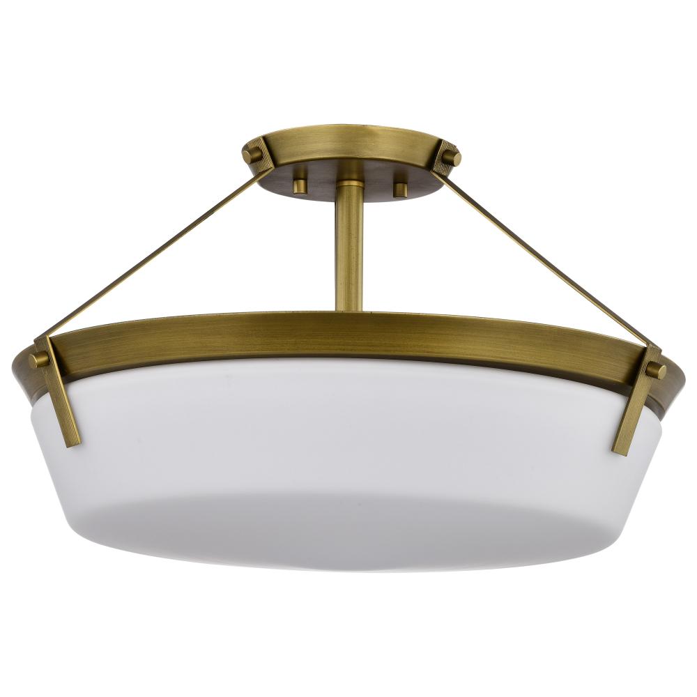 The Rowen 60-7752 semi-flush mount is a versatile lighting fixture that exudes elegance and sophistication. The natural brass finish gives the fixture a warm and inviting look, while the etched white glass diffuses the light to create a soft and ambient gl