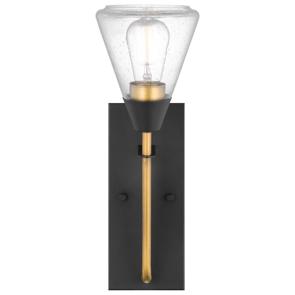 Mid-century charm in a stunning silhouette graces the Starlight 60-7681 one light wall sconce. This design is offered in matte black with a pop of brass, adding interest. The antique-inspired seeded clear glass continues the timeless style throughout the f