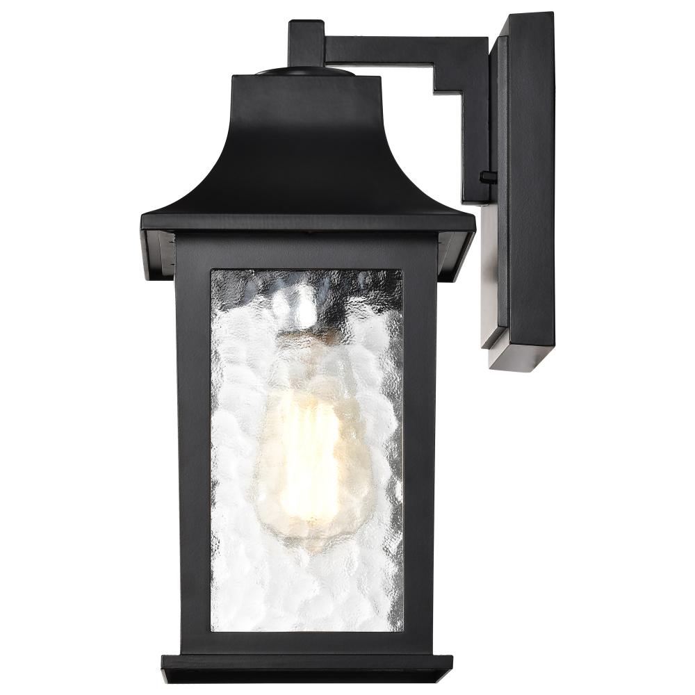 Stillwell Collection Outdoor 13 inch Wall Light; Matte Black Finish with Clear Water Glass