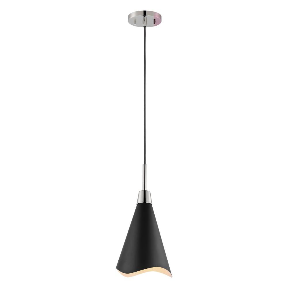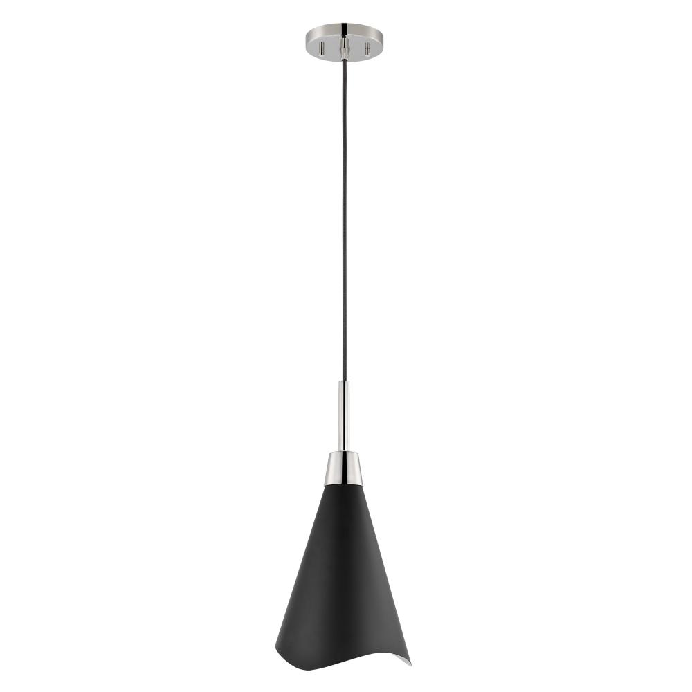 Tango; 1 Light; Large Pendant; Matte Black with Polished Nickel