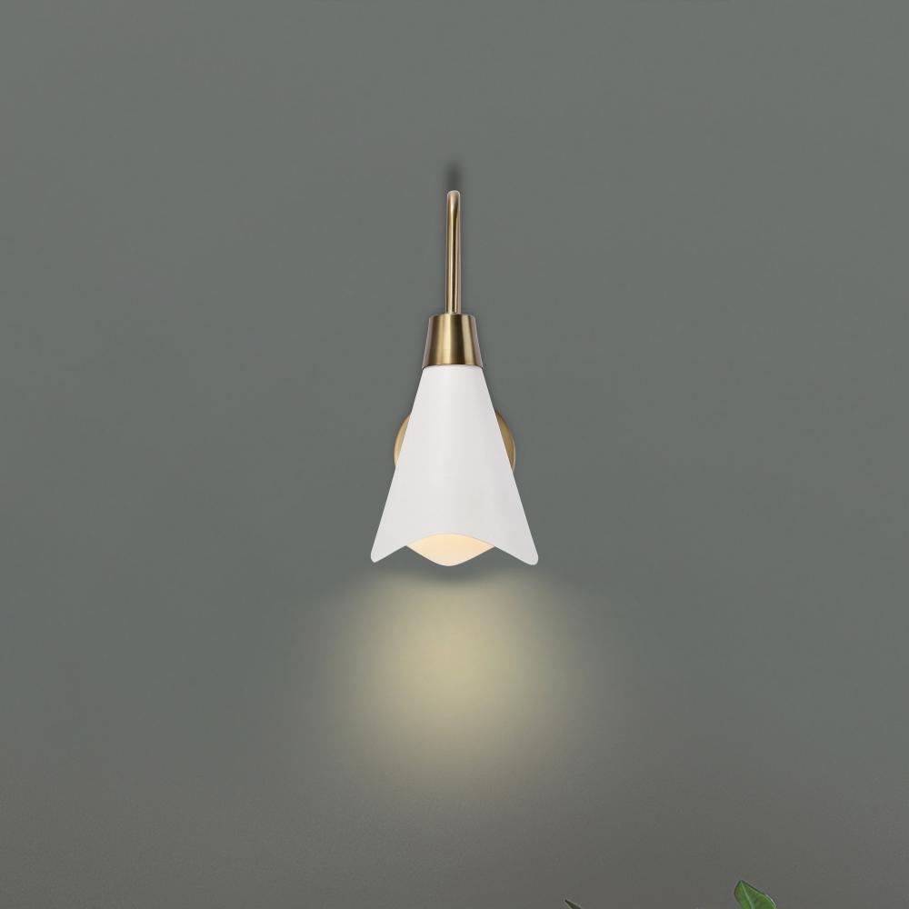 Tango; 1 Light; Wall Sconce; Matte White with Burnished Brass