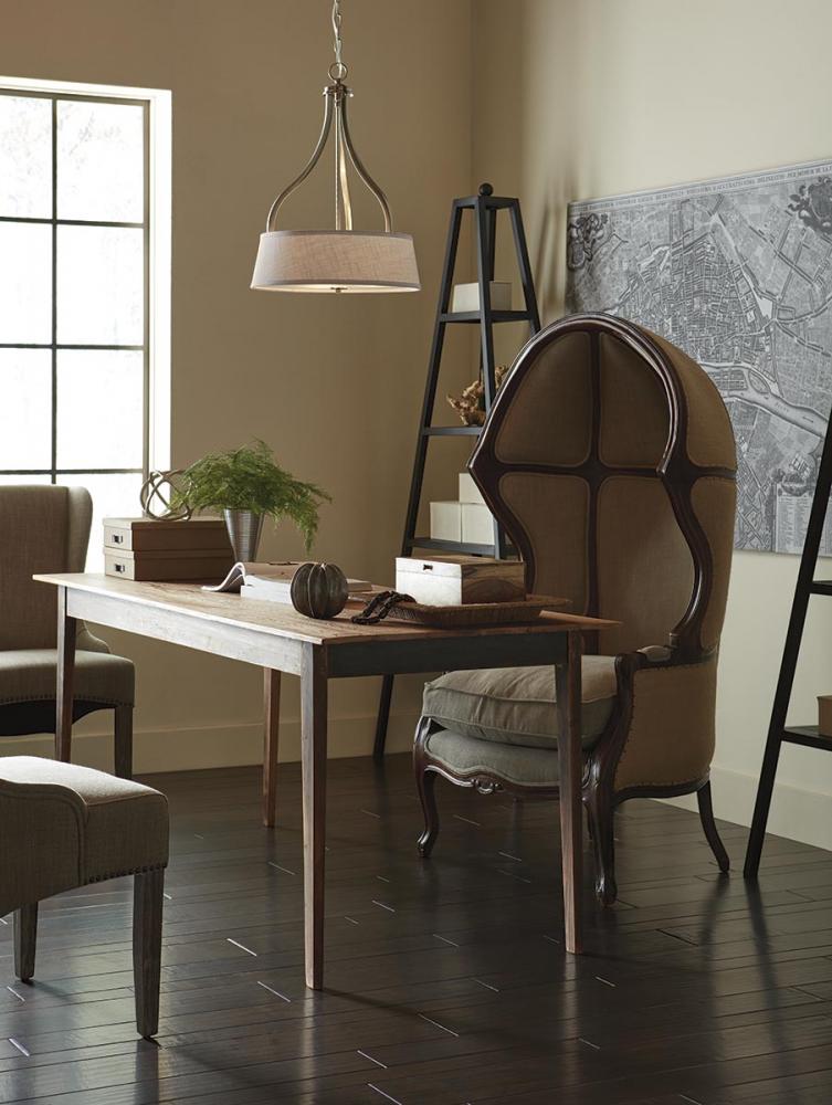 The three-light inverted pendant from the Arden collection offers a comfortable silhouette that is both rustic and modern. The summer linen shades with etched glass diffuser coordinates with many other Progress Lighting styles like Cherish. This transitional style fixture is finished in Brushed Nickel.
