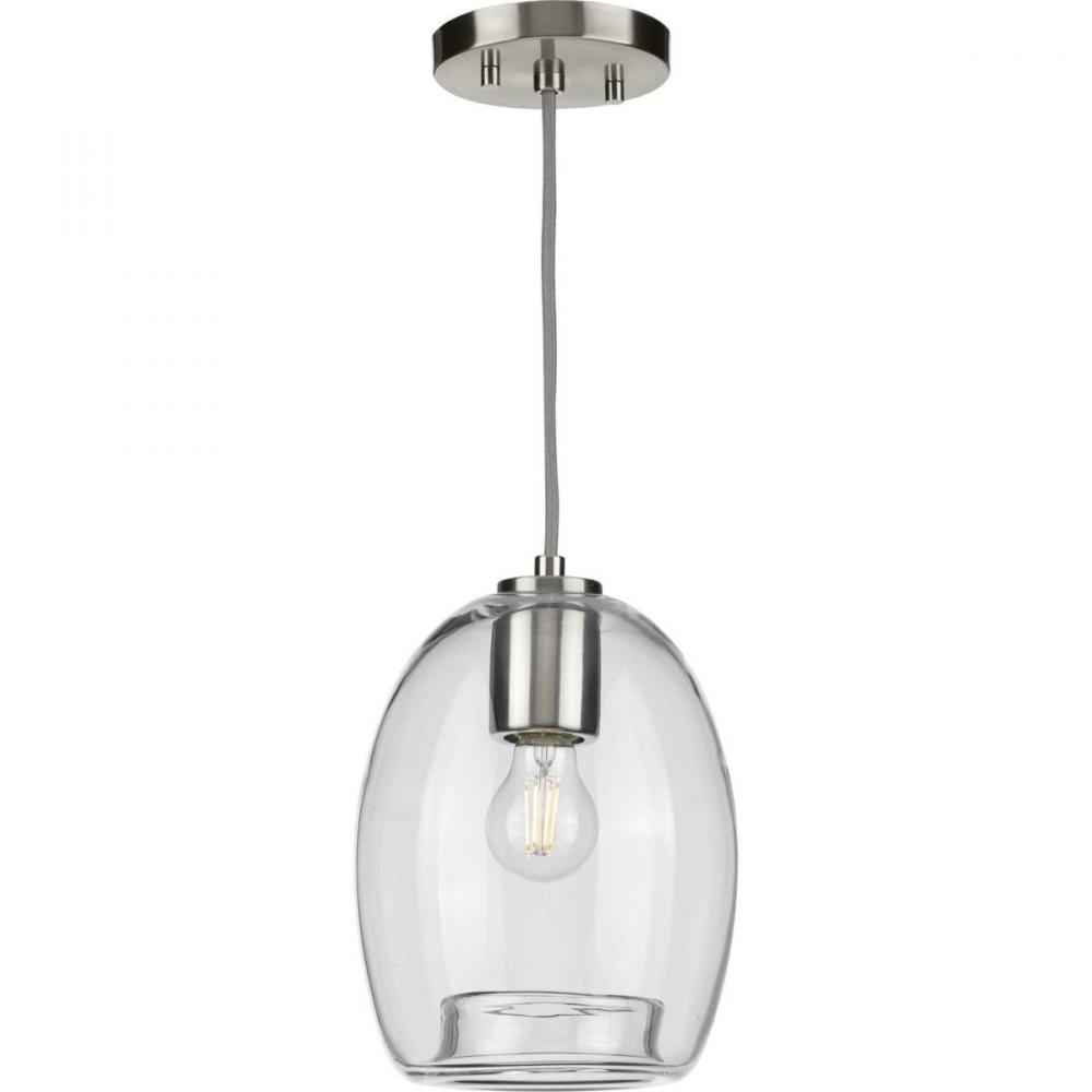 Infuse Your Home With The Subtle Industrial Flair Of This Mini-Pendant. Inspired By The Outstanding Architecture Of Suspension Bridges, The Light Fixture Features A Fabric Cord That Attaches To A Beautiful Brushed Nickel Light Base And Smooth Round Ceiling Plate. A Clear Glass Shade With A Rolled Rim At Its Bottom Adds An Extra Touch Of Artisan Inspiration.