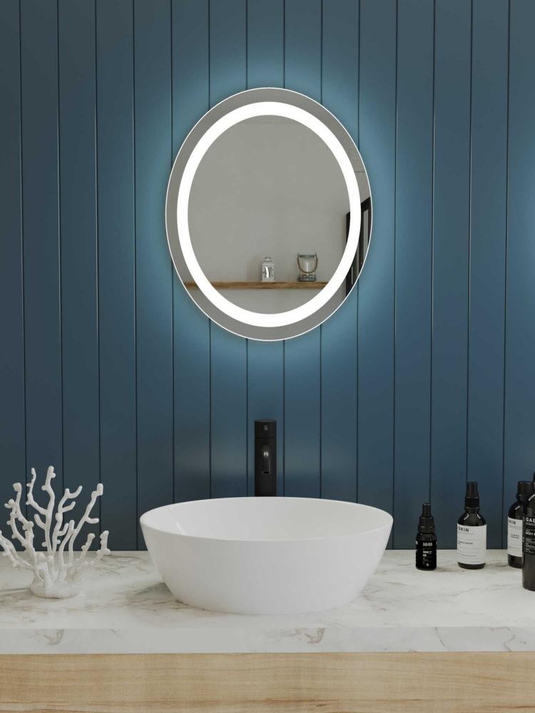 This oval LED illuminated mirror dramatically boosts the aesthetic of modern homes