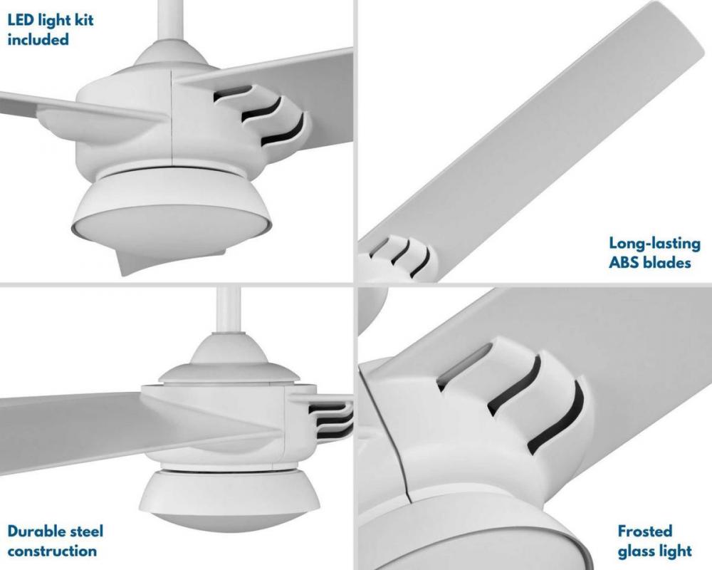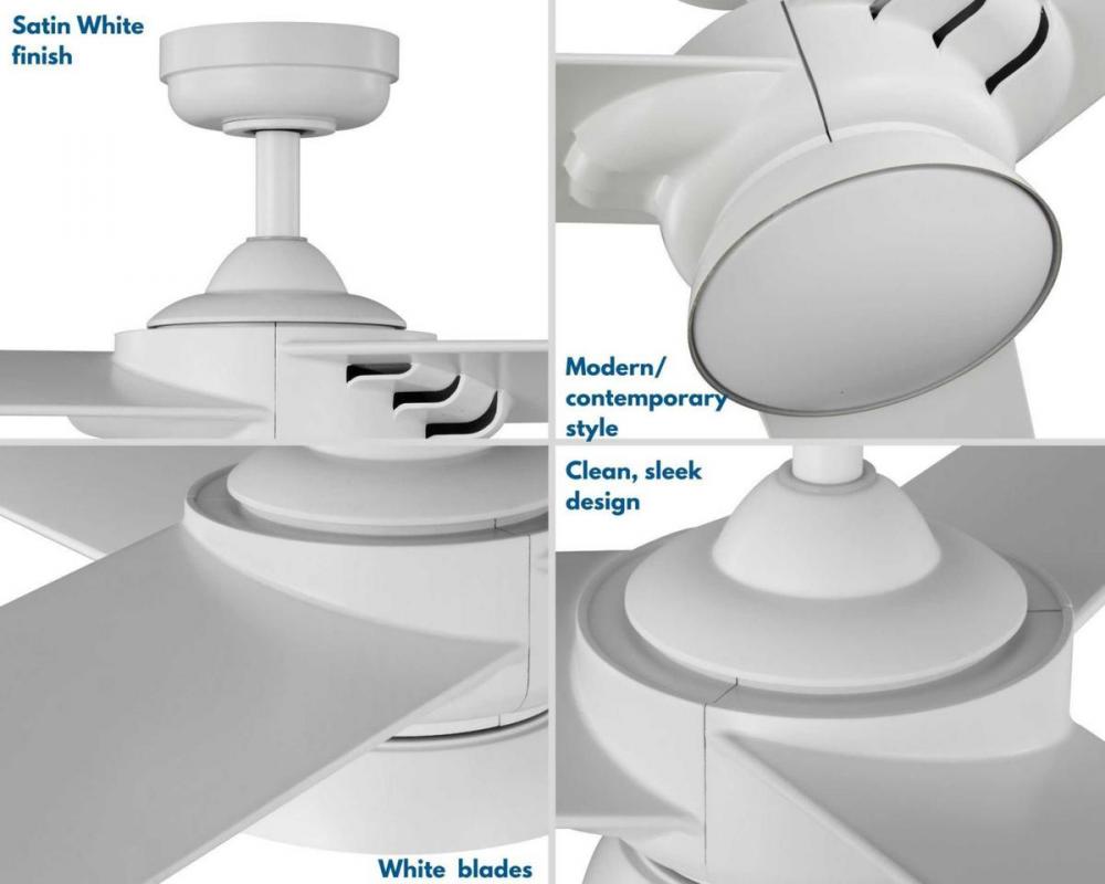 Achieve a sleek, modern look with the Edwidge Collection 3-Blade White 52-Inch DC Motor LED Contemporary Ceiling Fan. The non-metallic, rust-proof housing and canopy are coated in a crisp satin white finish complemented by white blades. The blades are crafted from a strong, all-weathered ABS material to prevent warping.