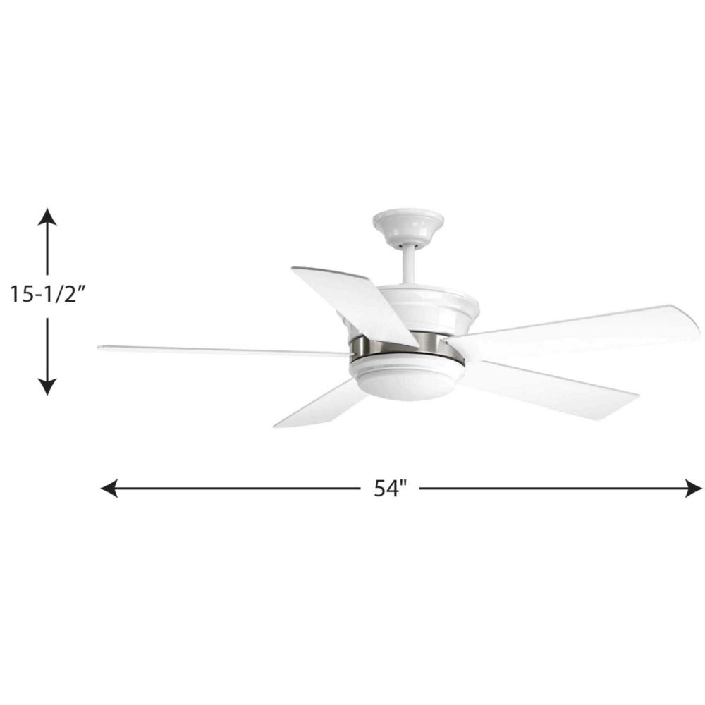 This five-blade 54 inch Harranvale ceiling fan features an LED light, offering both form and function with energy- and cost-savings benefits. A white opal glass shade features a 17W, dimmable 3000K LED module. A remote with batteries is included – and controls full range dimming and fan speed capabilities. The Harranvale features a design that incorporates mixed metal design details that is very popular in today’s home decor. Featuring reversible blades in a White finish with Brushed Nickel accent.