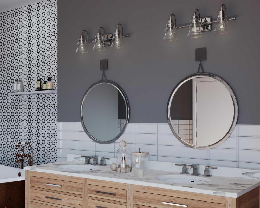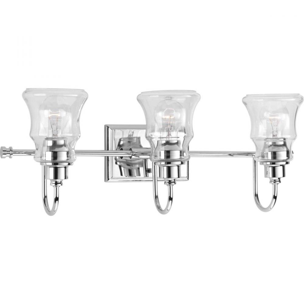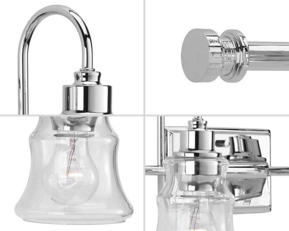 Ideal for a bathroom;Perfect for coastal, farmhouse, and transitional style settings;Crisp polished chrome finish;Crisp clear glass shades;Mount the light fixture facing up or down;Use 3 medium base bulbs that are sold separately (60 W max - LED/CFL/incand