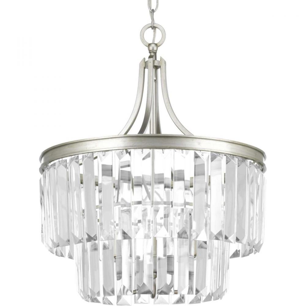 Elements that sparkle create an instant statement within the home.;Prismatic glass pendants offer a livable luxury feel.;Architecturally- styled frame in Silver Ridge finish.