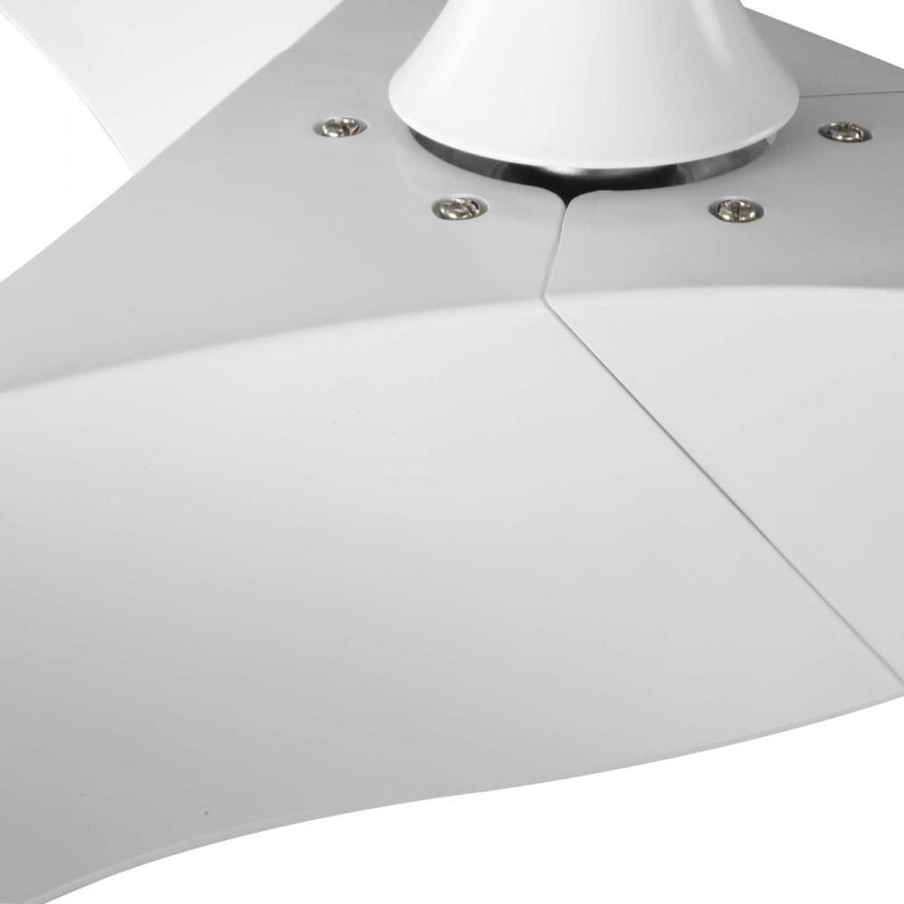 Application: Ideal for any bedroom, living room, great room, or covered porch.;Style: Perfect for transitional style settings.;Blades: Three slightly curved ABS blades are coated in a crisp matte white finish that will complement a variety of living areas.