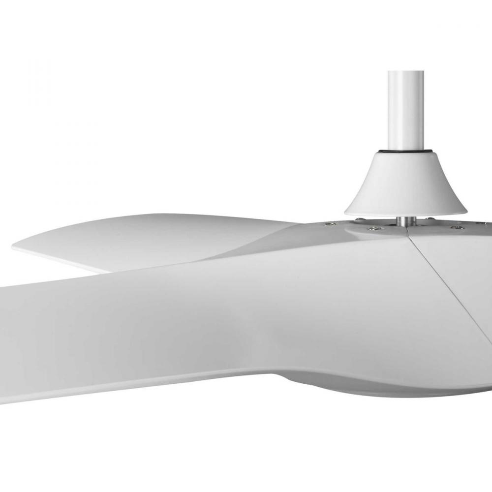 Enjoy a beautiful ceiling fan at a fantastic price with the Ryne Collection 52-Inch 3-Blade Matte White LED Transitional Indoor/Outdoor Ceiling Fan. Three slightly curved ABS blades are coated in a crisp matte white finish that will complement a variety of living areas. The blades are resistant to warping from environmental conditions and offer a long product lifespan. The fan's downrod and canopy are coated in a white finish to complete the transitional design. A 6-speed full-function remote control with batteries is included so you can adjust full-range dimming and fan speed without breaking a sweat.