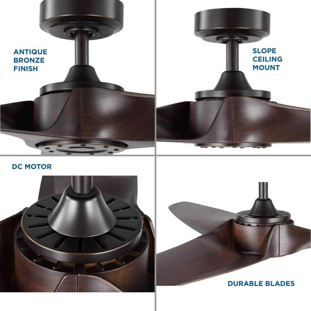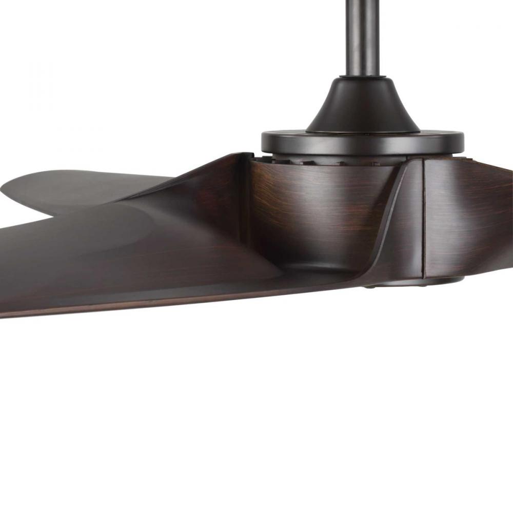 Ideal for a great room, living room, or outdoor covered porch;Perfect for urban industrial style settings;3 hand-finished ABS blades coated in a walnut finish with handsome antique bronze accents;Not compatible with light kits;Includes a 6-speed full-funct