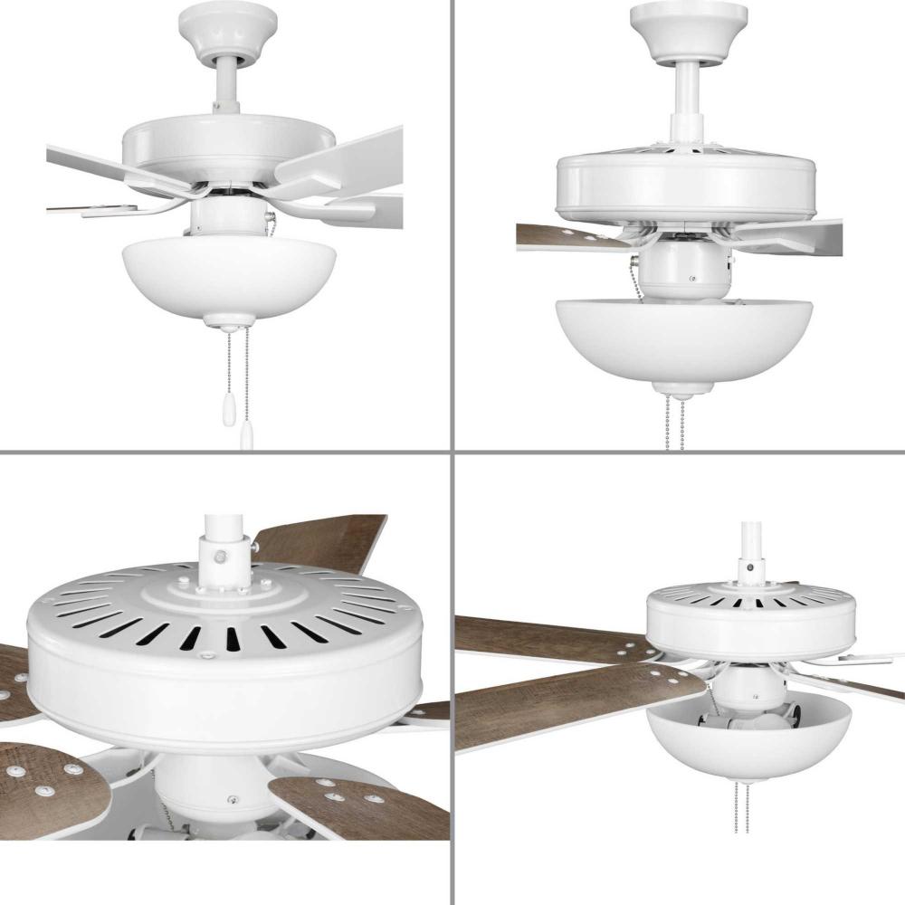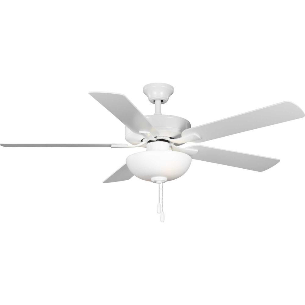 The AirPro 52” 5-blade ceiling fan refreshes interiors with a sleek, modern form coated in a crisp White finish. Five clean-lined fan blades extend outward from a streamlined motor housing that contains a powerful AC motor. Its versatile yet timeless design makes it ideal for a wide range of interior décor styles. The fan has an AC motor and is rated for maximum efficiency. A Unipack option packages the light kit so that it ships with the fan, eliminating both the need to order the light kit separately and having the light kit shipped separately from the fan. A shatterproof white Frosted polypropylene dome shade offers durability and optimal, even illumination. Two medium based LED lamps (8.5-Watt, 80CRI, 3000K) are included. An accessory wall and remote control can be added (sold separately). The fan can be installed on a flat or sloped ceiling. The blade arms have Captive Screws allowing for easier installation.