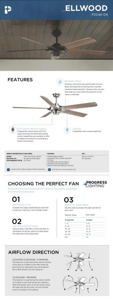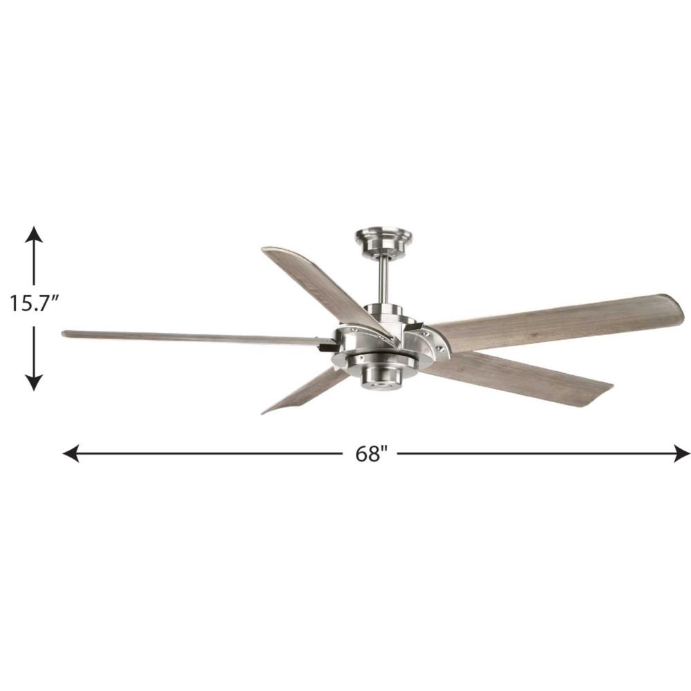 A picture of modern design, the functional minimalism of the Brushed Nickel Ellwood 68 inch ceiling fan is a product of advanced design. Five long and graceful blades made of carved wood move air with remarkable efficiency. A remote with batteries is included – and controls full range dimming and fan speed capabilities.