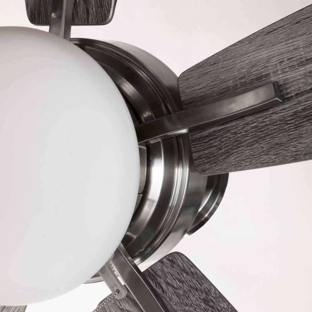 52" Billows collection ceiling fan features an LED light source, offering both form and function with energy- and cost-savings benefits;Five reversible Silver/Whitewashed Grey blades;Billows collection ceiling fan with Brushed Nickel finish;Pull chain