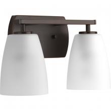 Ideal for a bathroom and powder room.;Perfect for modern and transitional style settings;Beautiful brushed nickel finish;Elegant etched glass shades;Mount the light fixture facing up or down;Use 2 medium base bulbs that are sold separately (100 W max - LED