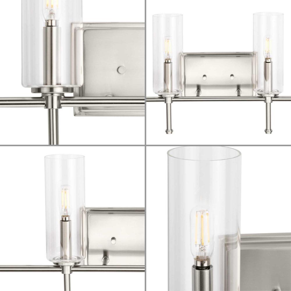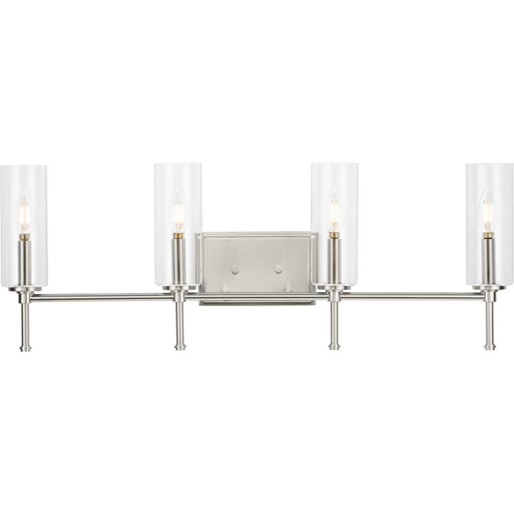 Elara features a slender, chic form with stylized finials that make it an elegant yet unobtrusive light for bathrooms;Its classically modern style is perfect for new traditional and transitional interiors;A beautiful brushed nickel finish enhances Elara