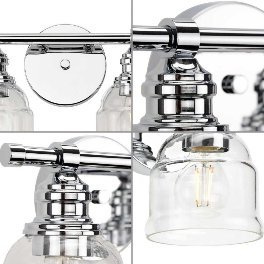 Vintage details abound in Ambrose, creating an ageless balance of style and substance. Turned metal fittings support clear glass shades that display nostalgic charm. A polished chrome finish is a nod to its inspiration of yesteryear and makes it an excellent choice for farmhouse, vintage electric and transitional settings.