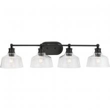 The Singleton Collection 4-light vanity fixture pays homage to industrial styling with oversized warehouse shades fabricated from clear glass. A round backplate and vintage-inspired metal fittings finished in subtle brushed nickel create a timeless design. Place above the vanity mirror for optimal task lighting in the bath. This versatile vanity light can be mounted up or down, casting even illumination in any setting.