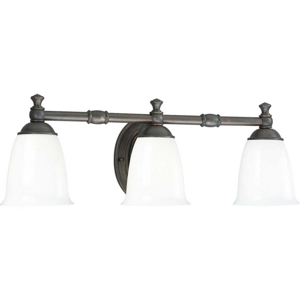 Ideal for a bathroom;Perfect for farmhouse, new traditional, traditional, and vintage electric style settings;Handsome venetian bronze finish;Crisp white opal glass shades;Mount the light fixture facing up or down;Use 3 medium base bulbs that are sold sepa