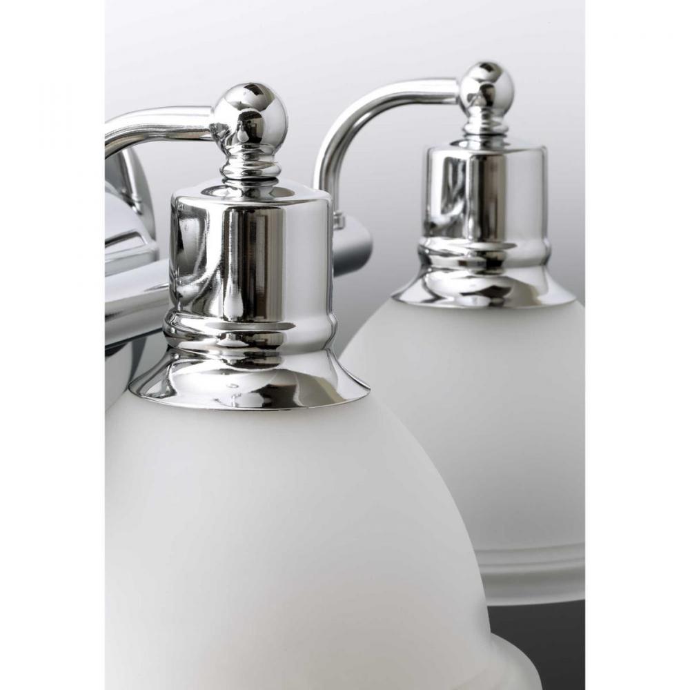 Ideal for a bathroom and powder room.;Perfect for traditional and transitional style settings;Crisp polished chrome finish;Elegant etched glass shades;Mount the light fixture facing up or down;Use 2 medium base bulbs that are sold separately (100 W max - L