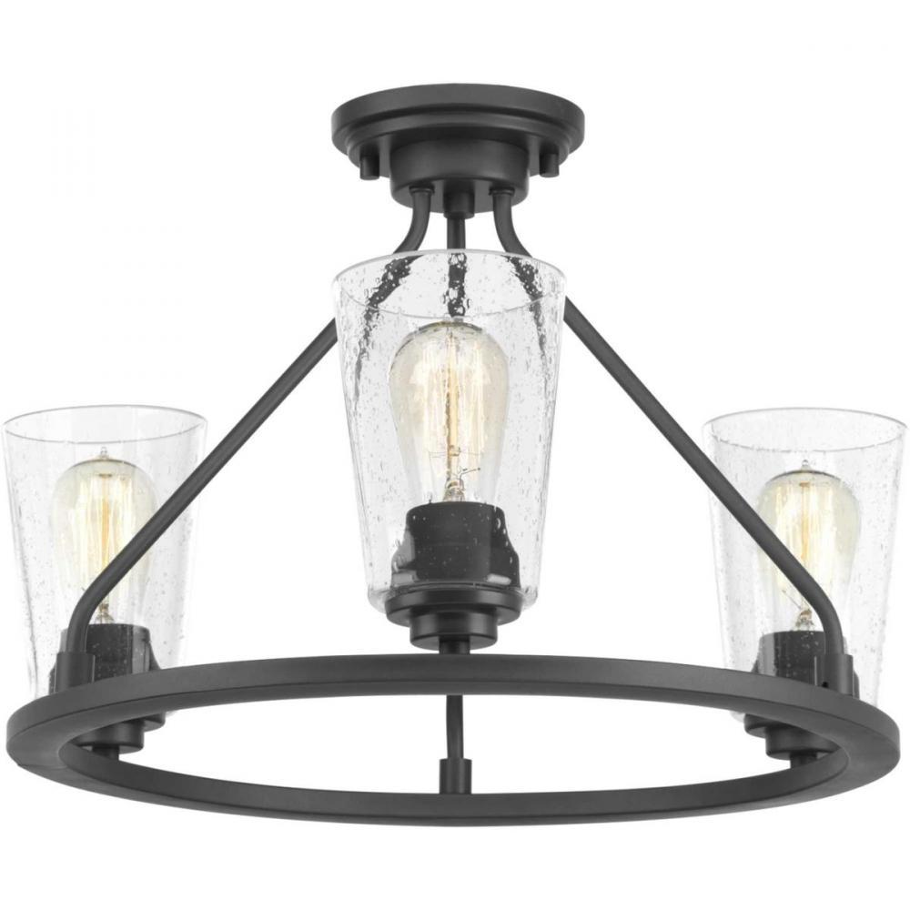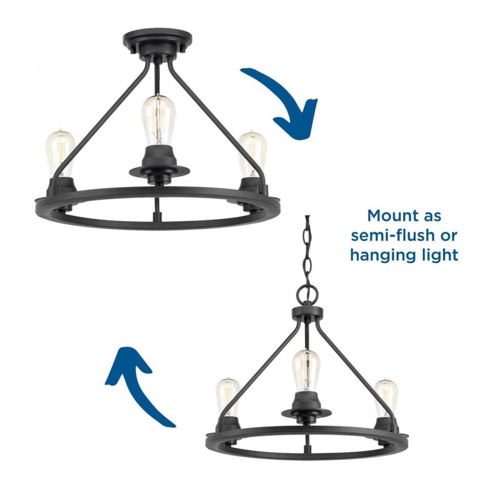 A new category of vintage modern fixtures takes center stage with this semi-flush, convertible fixture from one of our Design Series collections. Delicate details in a Graphite finish, create statement making focal pieces for a variety of interiors. Debut provides a fitting stage to feature nostalgic, vintage lamps. Glass accessory shades available in clear or frosted seeded finishes.