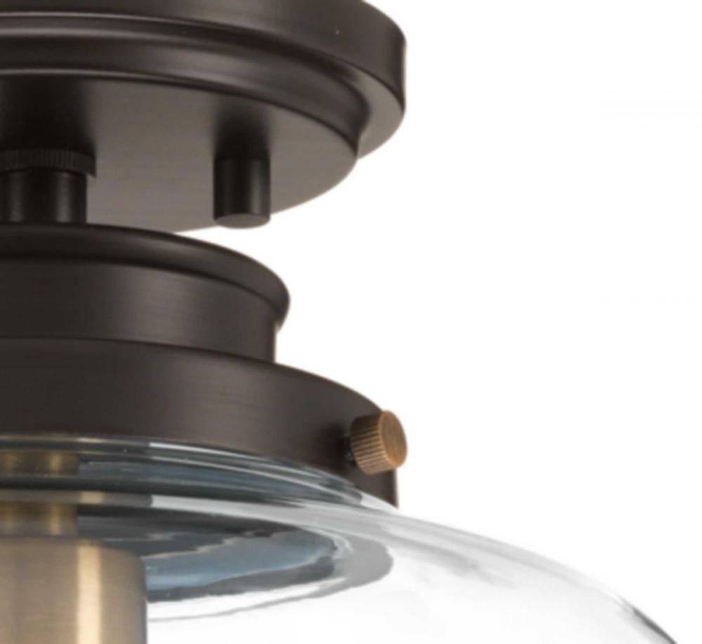The Judson collection features a timeless clear schoolhouse-style globe. Metal fittings add distinction to complete the vintage look. Judson provides the perfect compliment to farmhouse or coastal-inspired homes. One-light flush mount in an Antique Bronze finish.