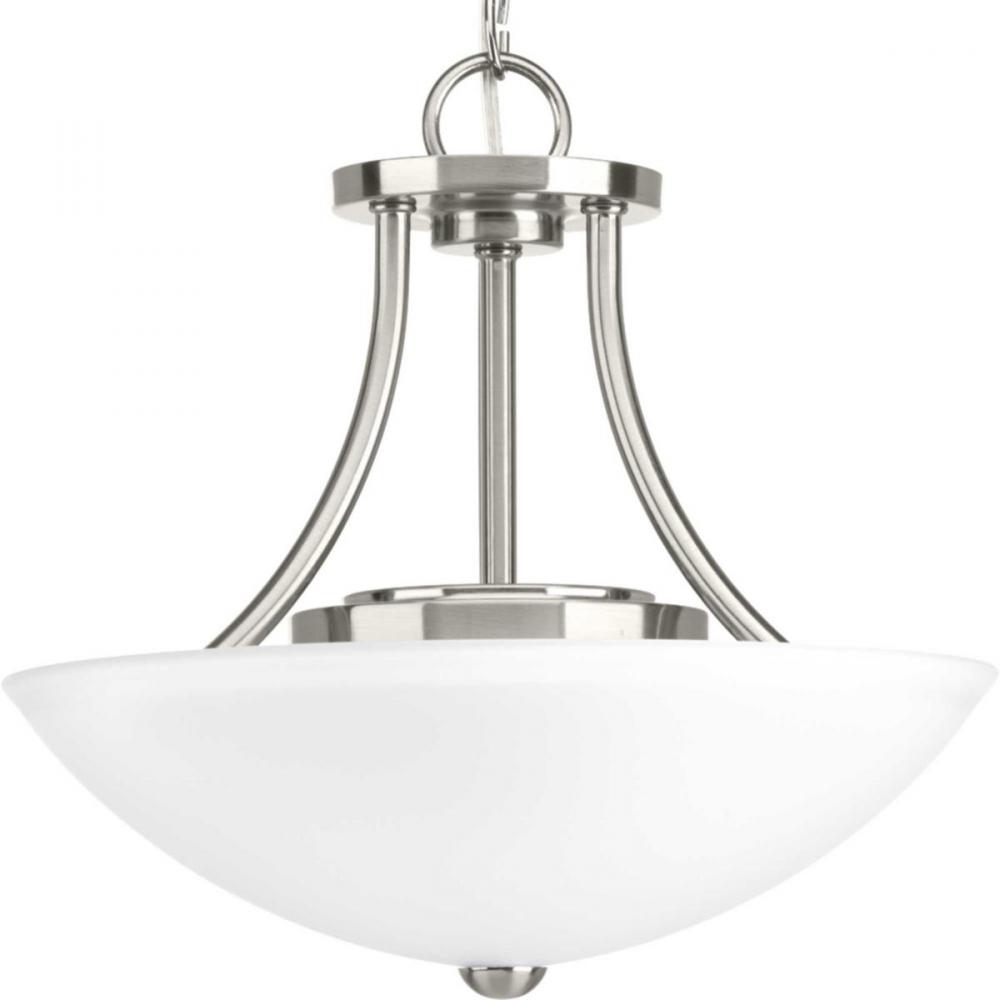 Design highlights smart simplicity to complement today's home;One light semi flush convertible;Popular Brushed Nickel finish;Etched glass shades add distinction;Features 17-watt integrated LED to deliver energy savings and reduce long-term maintenance