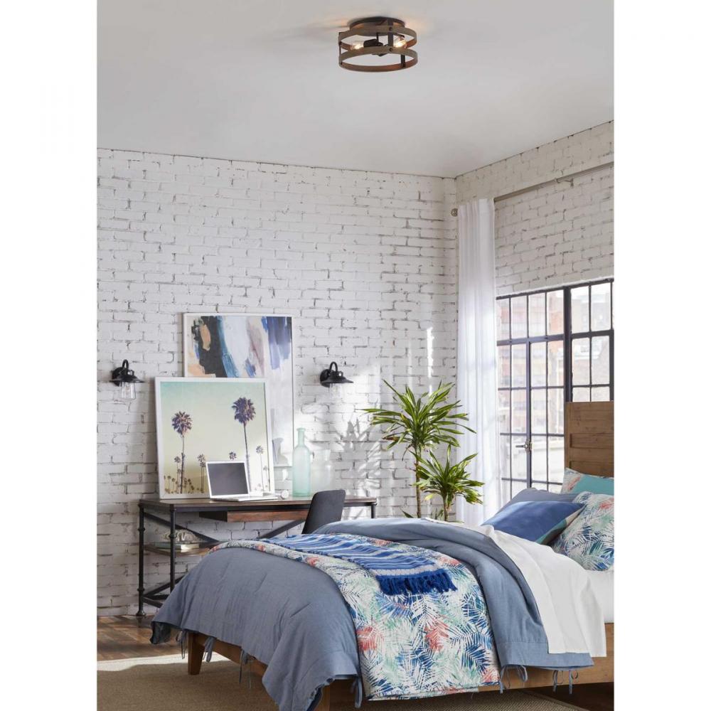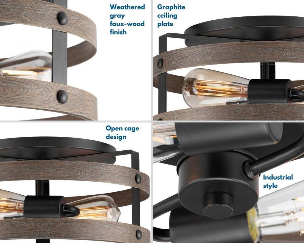 Cultivate an up-to-date country charm with the Gulliver Collection 2-Light Weathered Gray Farmhouse Flush Mount Ceiling Light. Light sources exude a comforting country glow as they peek through the circular bands of the open-cage design. The circular bands are constructed from a faux-wood coated in a weathered gray finish accented by graphite ceiling plate and metal details for perfect modern rustic character.