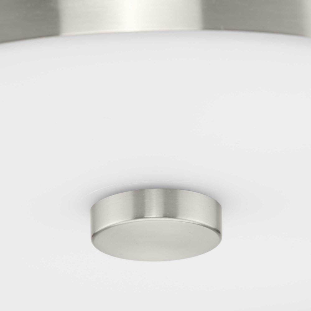 The Gilliam Flush Mount delivers an ethereal quality expressed by its slim circular silhouette finished in Brushed Nickel. Etched white curved glass enhances the ceiling light’s classic form with simple elegance. The 16 inch diameter light is perfect where a larger flush mount is needed.
