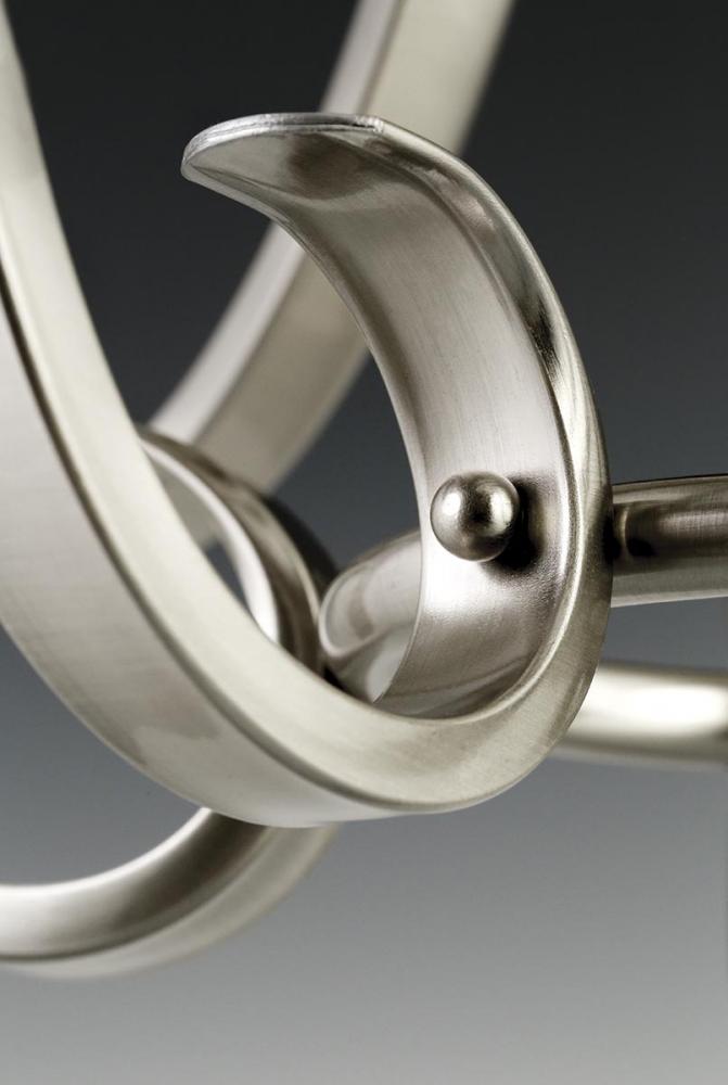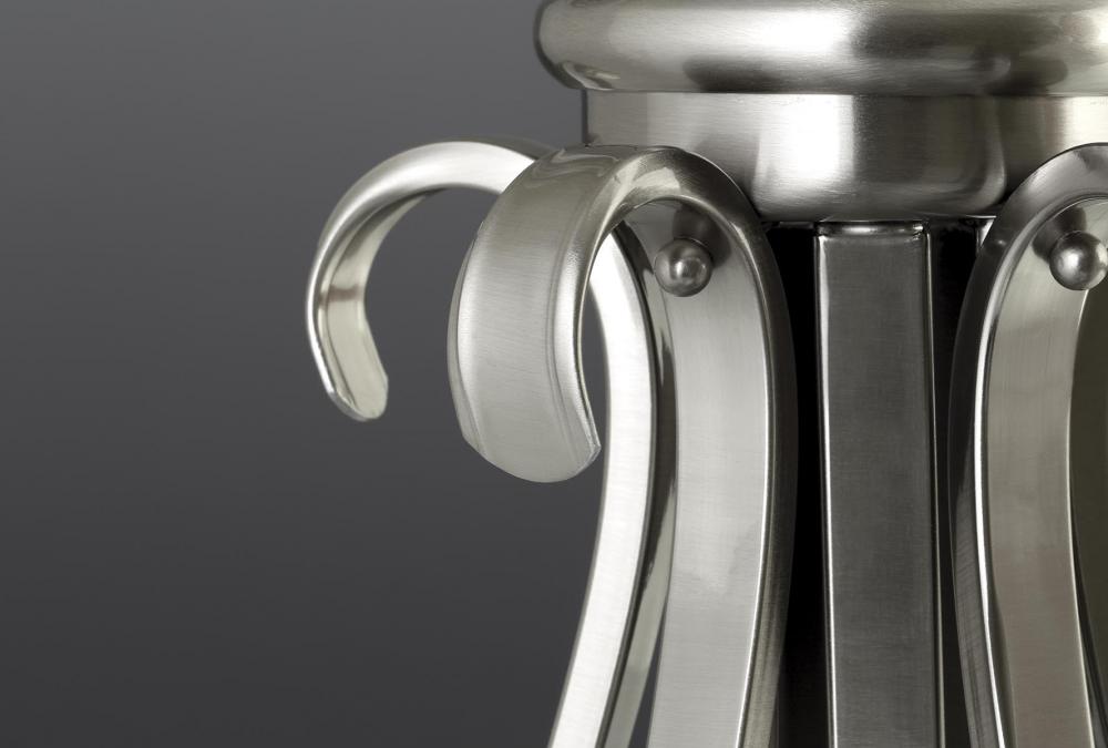 Brushed Nickel finish.;Etched glass bowl.;Distinctive ebbing and flowing of scrolls and arms.
