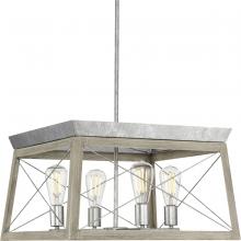 The Briarwood collection features a classic pattern commonly found on barn or farmhouse doors and gates. The simple geometric form features a faux-painted wood enclosure to frame vintage-style light bulbs. A rich Oak and Antique Bronze finish combination. Four-Light chandelier.