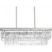 Elements that sparkle create an instant statement within the home;Glimmer is the definition of livable luxury;Antique Bronze finish;This contemporary interpretation features clear glass ornaments and is ideal for a variety of interior settings;Island fixtu