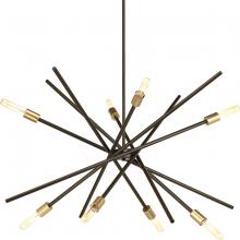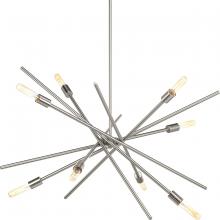The Astra chandelier features a space-age-inspired design perfect for modern and mid-century décor. Eight spoked arms radiate out from a cylindrical down rod suspended from a center round canopy, bringing a dynamic flair to the fixture's design. A crisp matte black finish adds a touch of sophistication. Decorative bulbs (sold separately) adorn the ends of each perpendicular arm. This versatile chandelier is ideal for bringing illumination to dining rooms, kitchens and bedrooms. This fixture is part of the Progress Lighting Design Series, a lighting collection offering fashionable styles and affordable luxury lighting for the home.