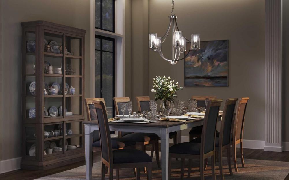 Manifest A Swoon-Worthy Lighting Experience With The Stunning Blend Of The Modern And Traditional Styles In This One-Of-A-Kind Chandelier. Square Tubing With Clean, Sharp Angles Is Coated In A Beautiful Brushed Nickel Finish That Demands Your Attention. Striking Vintage Light Sockets Boast Their Bold Yet Simple Demeanor As They Hold Clear Glass Shades To Complete This Statement-Making Light Fixture.