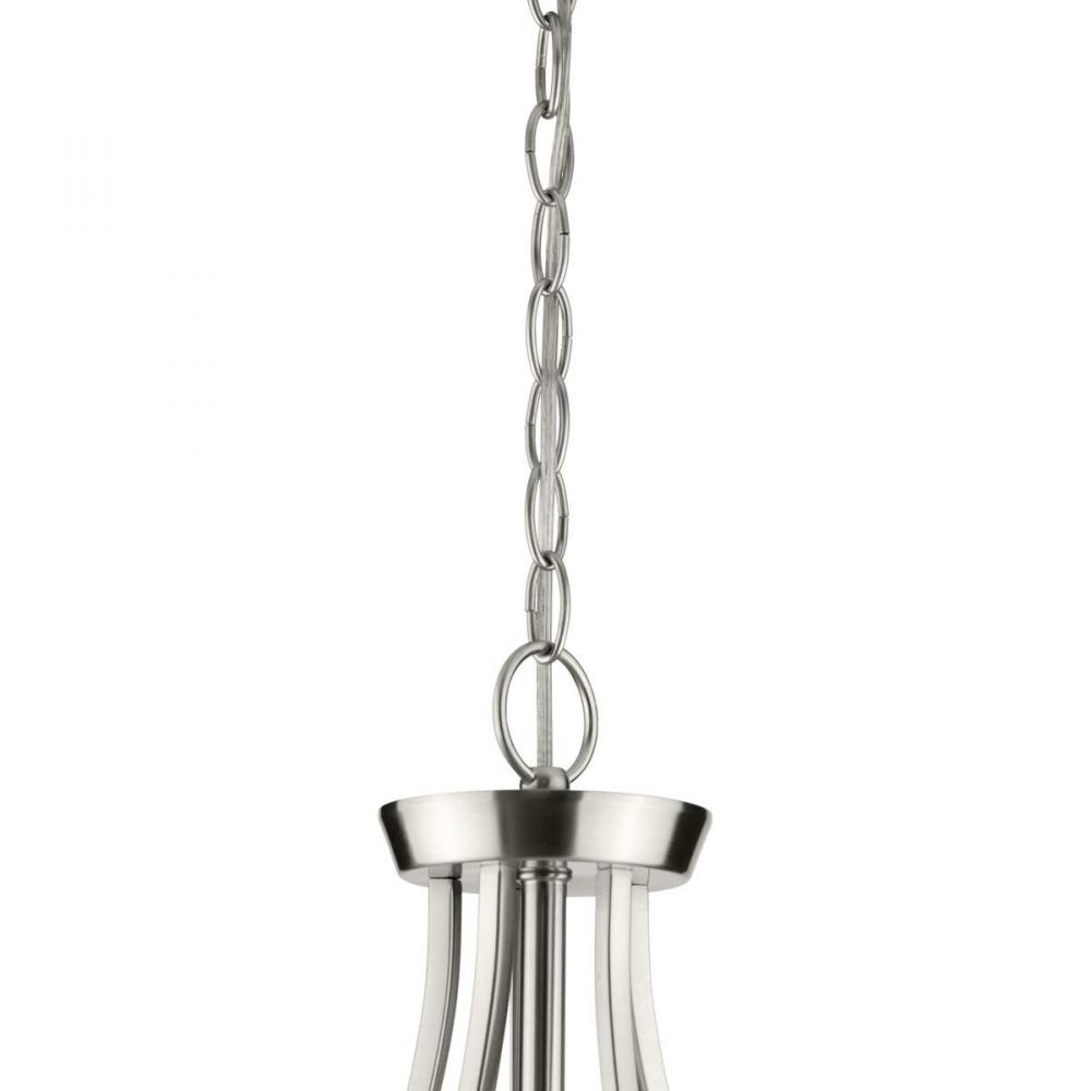 Coated in a beautiful brushed nickel finish.;Square tubing with clean, sharp angles.;Striking vintage light sockets demand your attention.;Clear glass shades complete the blend of modern and traditional styles.;Ideal for any foyer, kitchen, or dining room.