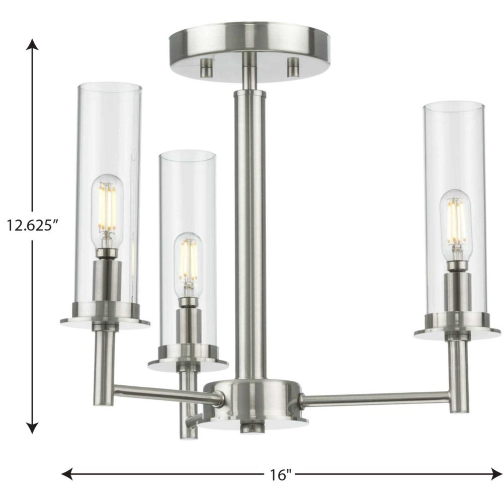 Balance the best of modern and traditional with the Kellwyn Collection 3-Light Brushed Nickel Clear Glass Transitional Semi-Flush Mount Convertible Ceiling Light. The classic frame with crisp, clean lines is coated in a beautiful brushed nickel finish. Light sources glow from inside cylindrical glass shades that add a touch of luxury to the design.