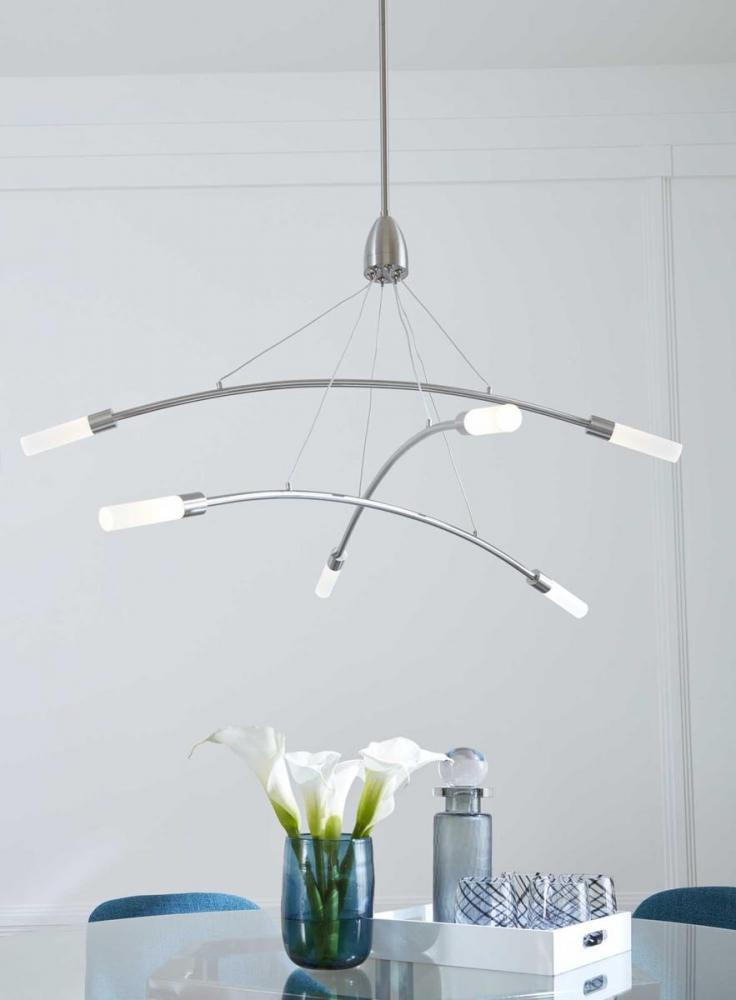 Application: Manifest a futuristic effect with the Kylo LED Collection 6-Light Brushed Nickel Frosted Acrylic LED Modern Chandelier Light ideal for any dining room, kitchen, bedroom, or living room.;Styles: Perfect for modern, contemporary, and mid-century