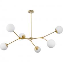 Modern and organic inspirations elegantly meld together in Haas. A bold linear frame finished in Brushed Nickel branches out to embrace smoothly etched opal glass globes that imbue rooms with soft illumination, and fits beautifully into timeless modern, mid-century modern and contemporary settings. The flexible arms of this fixture allows the fixture to be positioned flat or at an angle giving the ability to customize the look. This fixture is part of the Progress Lighting Design Series, a lighting collection offering fashionable styles and luxury lighting for the home.