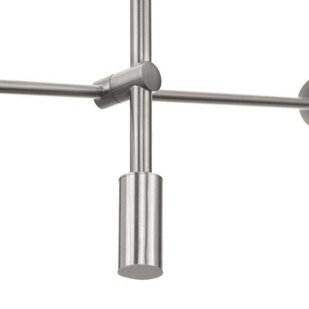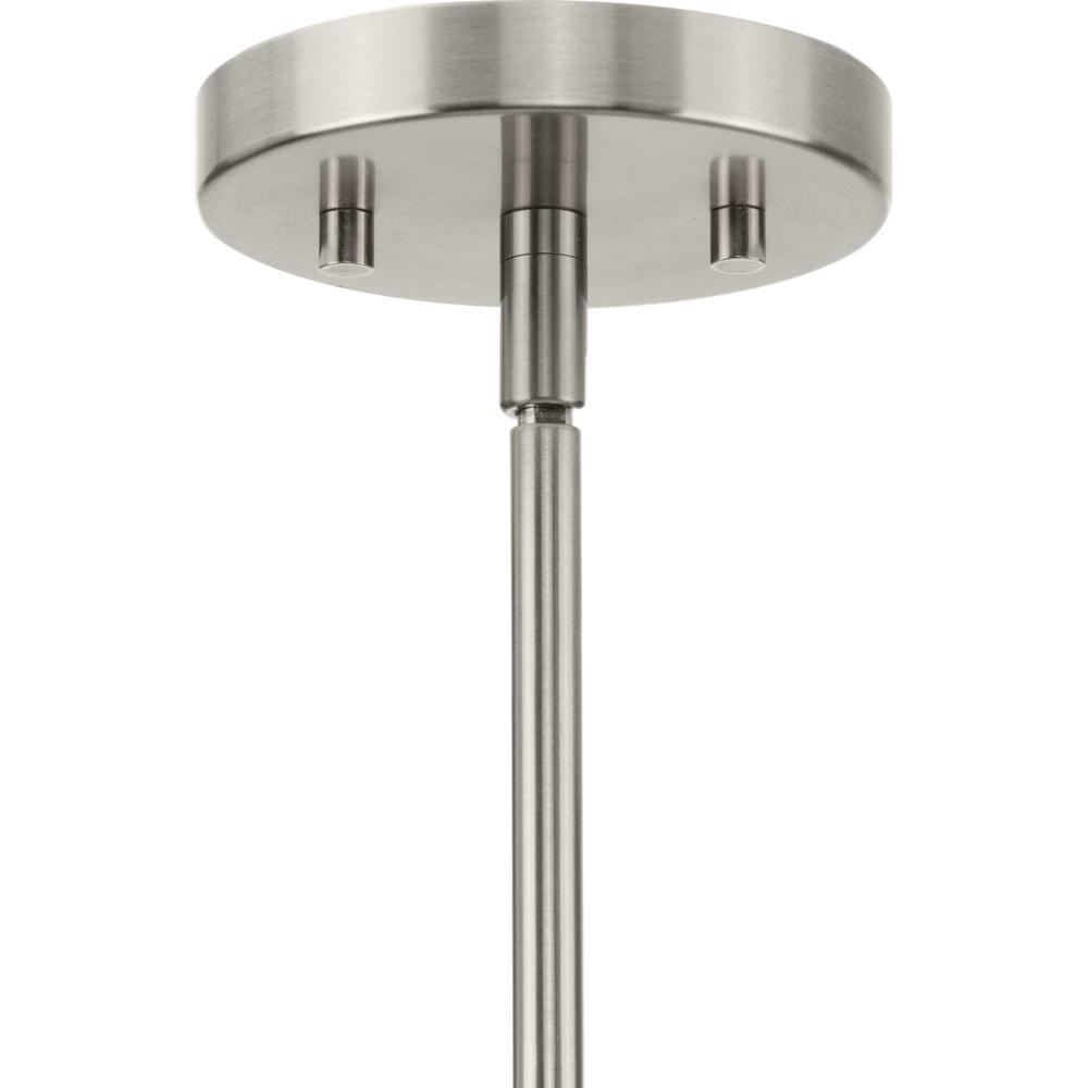 The light's timeless design is coated in a subtle brushed nickel finish