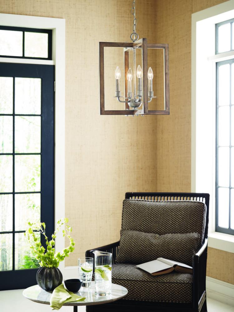 Nautical and coastal-inspired four-light pendant is popular in a variety of today's home designs. Turnbury pendants feature a solid wood frame surrounded with hand-painted, galvanized metal fittings. The distressed frame finish is reminiscent of driftwood that has been weathered in the sun.