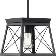The Briarwood collection features a classic pattern commonly found on barn or farmhouse doors and gates. The simple geometric form features a faux-painted wood enclosure to frame vintage-style light bulbs. A coastal-inspired whitewashed finish paired with Graphite details. One-light mini-pendant.