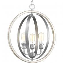 The Conestee collection three-light pendant features a stunning armillary-style frame. Dual tone finish combination of Graphite with weathered gray accents. While Conestee is ideal for Rustic Farmhouse or Urban Industrial home environments, it can also be paired with a number of Coastal-inspired fixtures to complement natural wood materials.