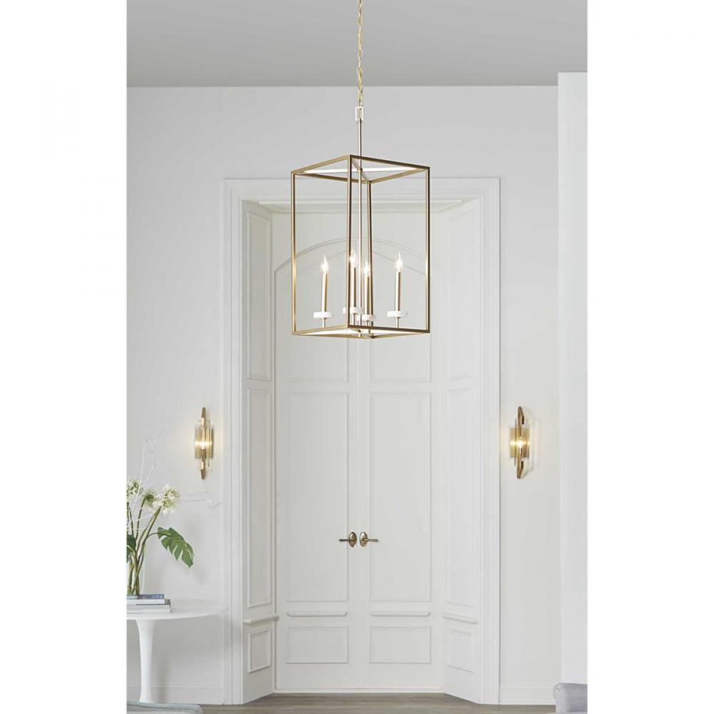 An intriguing fashion-forward lighting collection, Palacio pairs a Vintage Gold cage with faux white marble accents on the candles for a stunningly elegant design. The four-light Pendant is ideal for a variety of interiors.