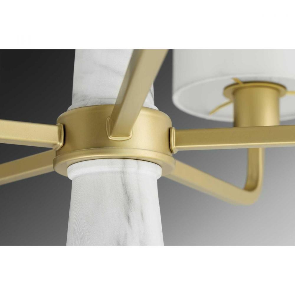 Faux white marble accents enhance an elegant gold-tone frame;White silk shades complement gold accents to create a statement-making style;Group pendants over kitchen islands, rustic farmhouse dining tables or in foyers and entryways;Foyer fixture uses four