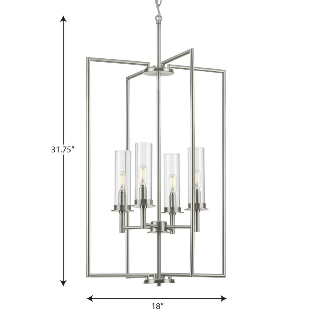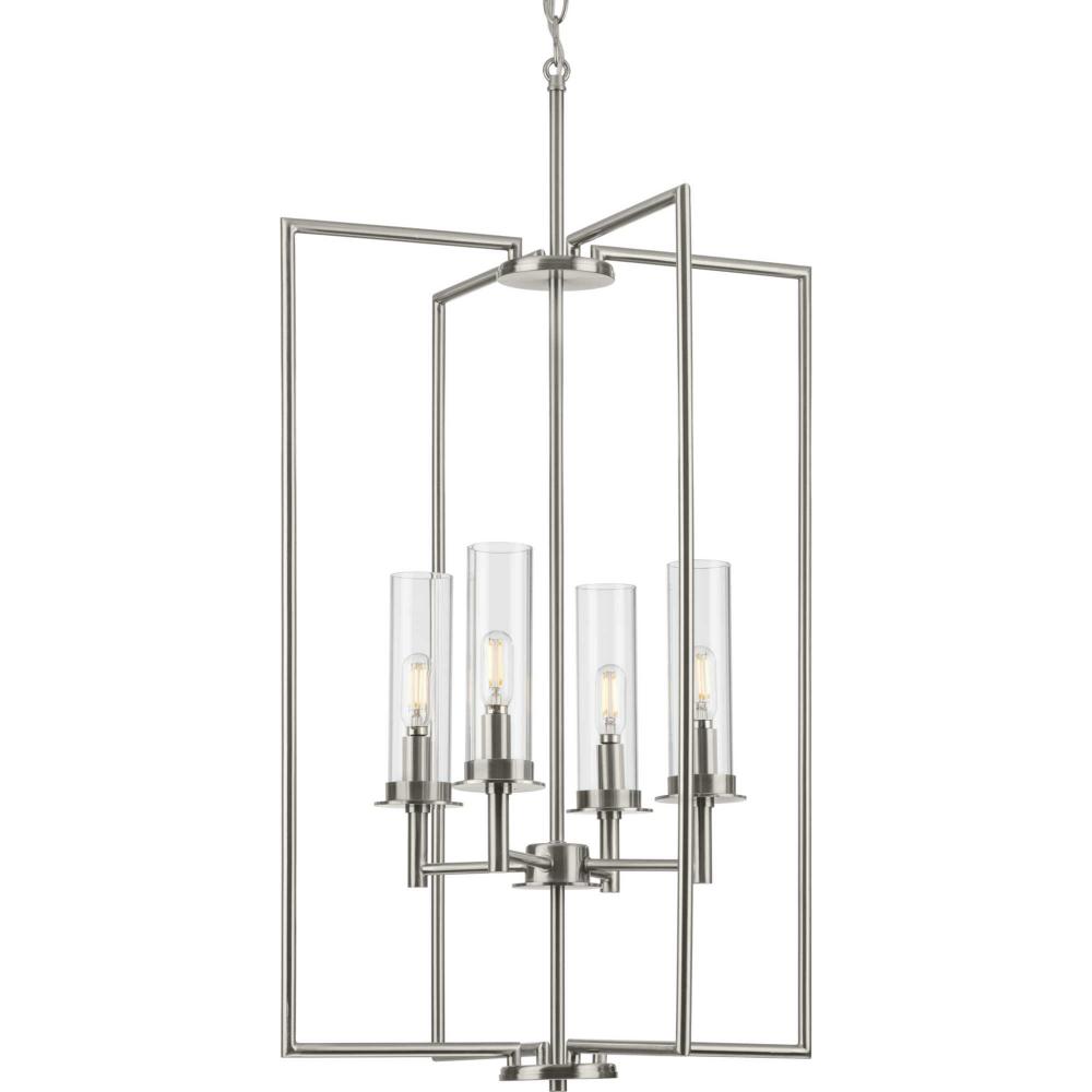 Application: Balance the best of modern and traditional with the Kellwyn Collection 4-Light Brushed Nickel Clear Glass Transitional Foyer Pendant Light ideal for any foyer, dining room, stairway, or entryway.;Styles: Perfect for contemporary, traditional,