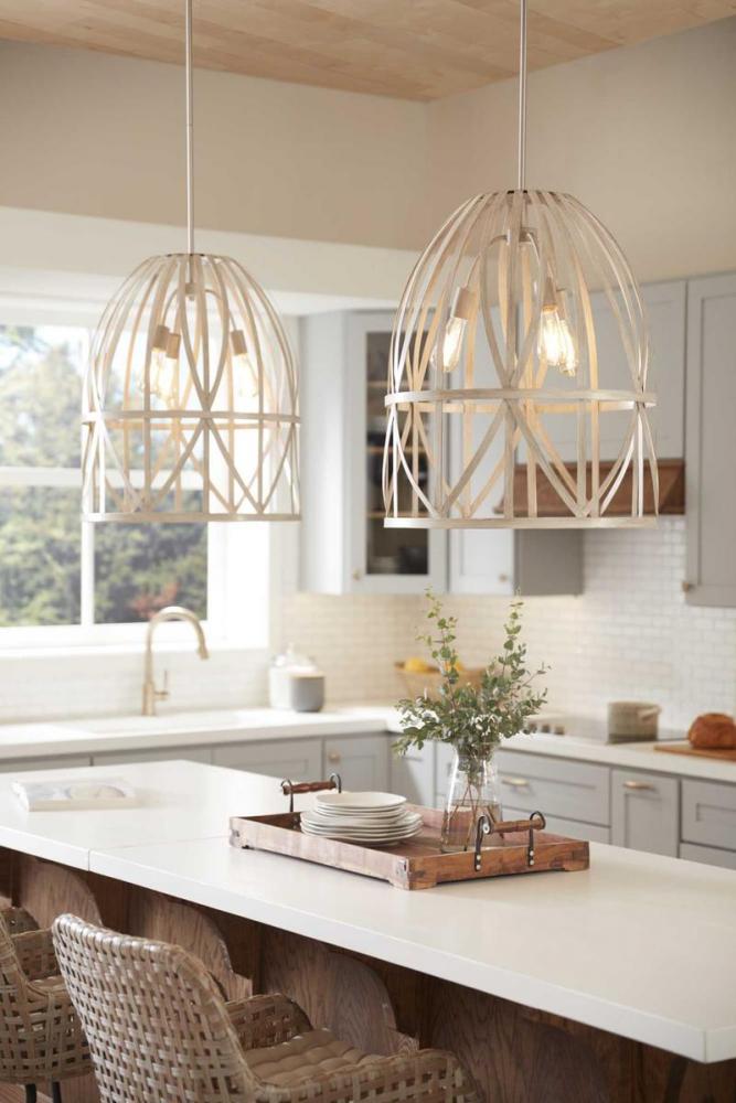 Ideal for a kitchen, dining room, or bar;Perfect for farmhouse, global, and coastal style settings;Rustic bleached oak finish with beautiful brushed nickel accents;Bleached oak metal shade;Includes 63-inch chain to adjust for a variety of ceiling heights;U