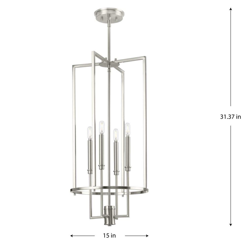 The Elara foyer light features a slender, chic form captured in an elongated frame, making it ideal for foyers, great rooms and kitchens;Its classically modern style is perfect for new traditional and transitional interiors;A beautiful brushed nickel fin