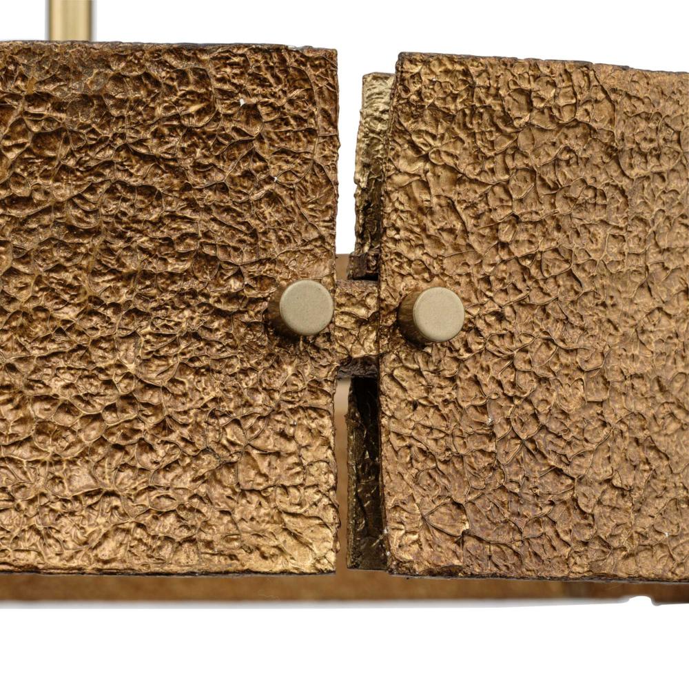 Its modernist frame is finished in a painted soft gold accented by foundry gold
