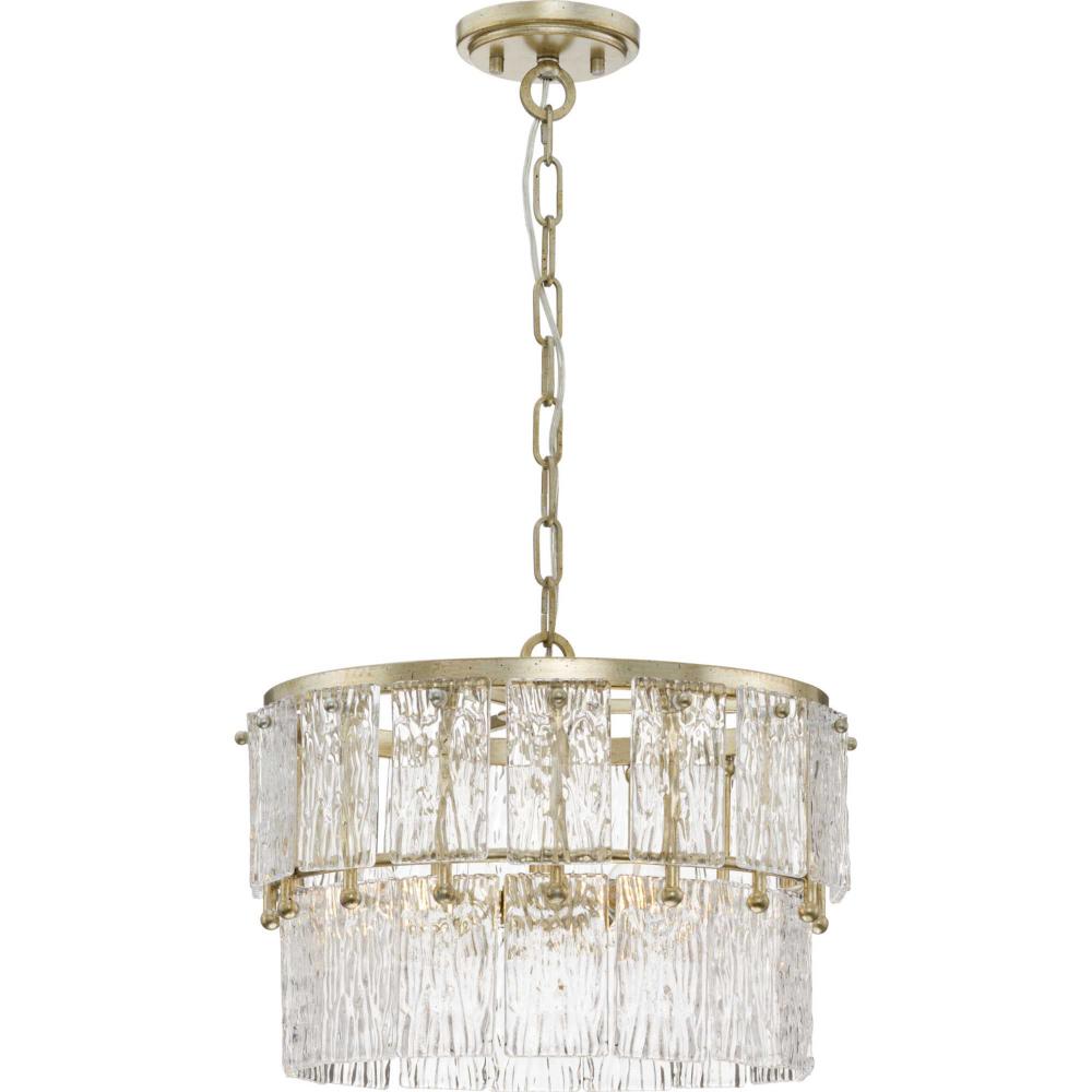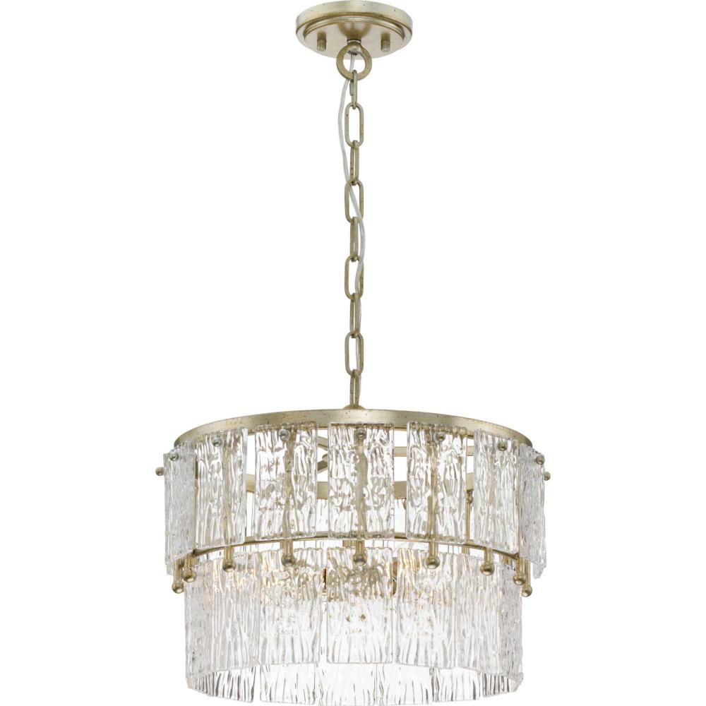 Add glamour to your home with the elegant Chevall Collection. Layers of distinctive artisanal glass encircle a richly burnished, Gilded Silver frame, creating a pendant that offers a luxurious lighting experience. Glimmering illumination creates a sparkling ambiance that fills the room. This versatile fixture can be mounted to the ceiling as a semi-flush or as a pendant.