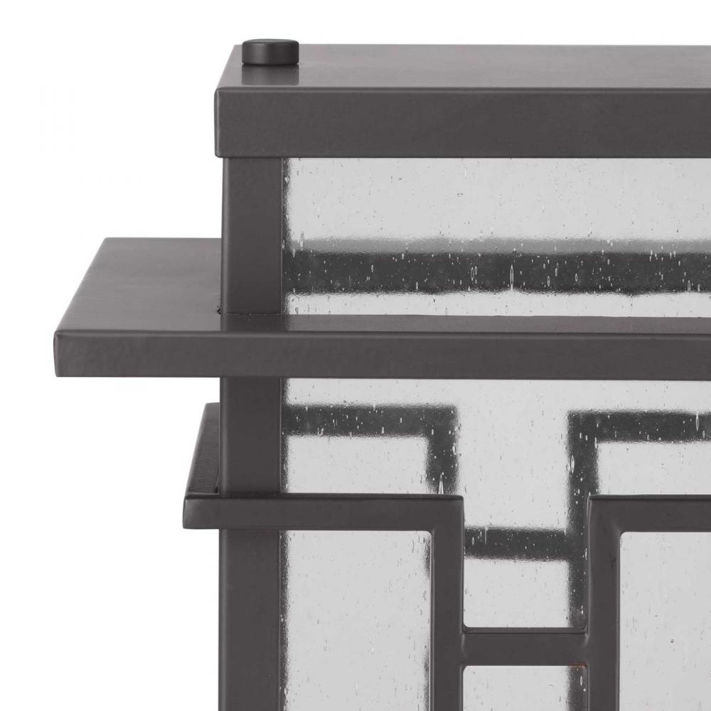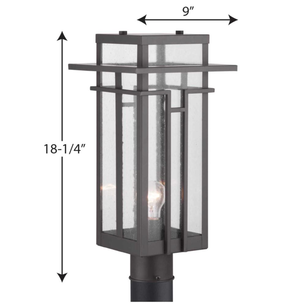Geometric details in Boxwood’s design enhance Craftsman-inspired architecture. The one-light post lantern features clear seeded glass and finished in Antique Bronze which completes the authentic style.